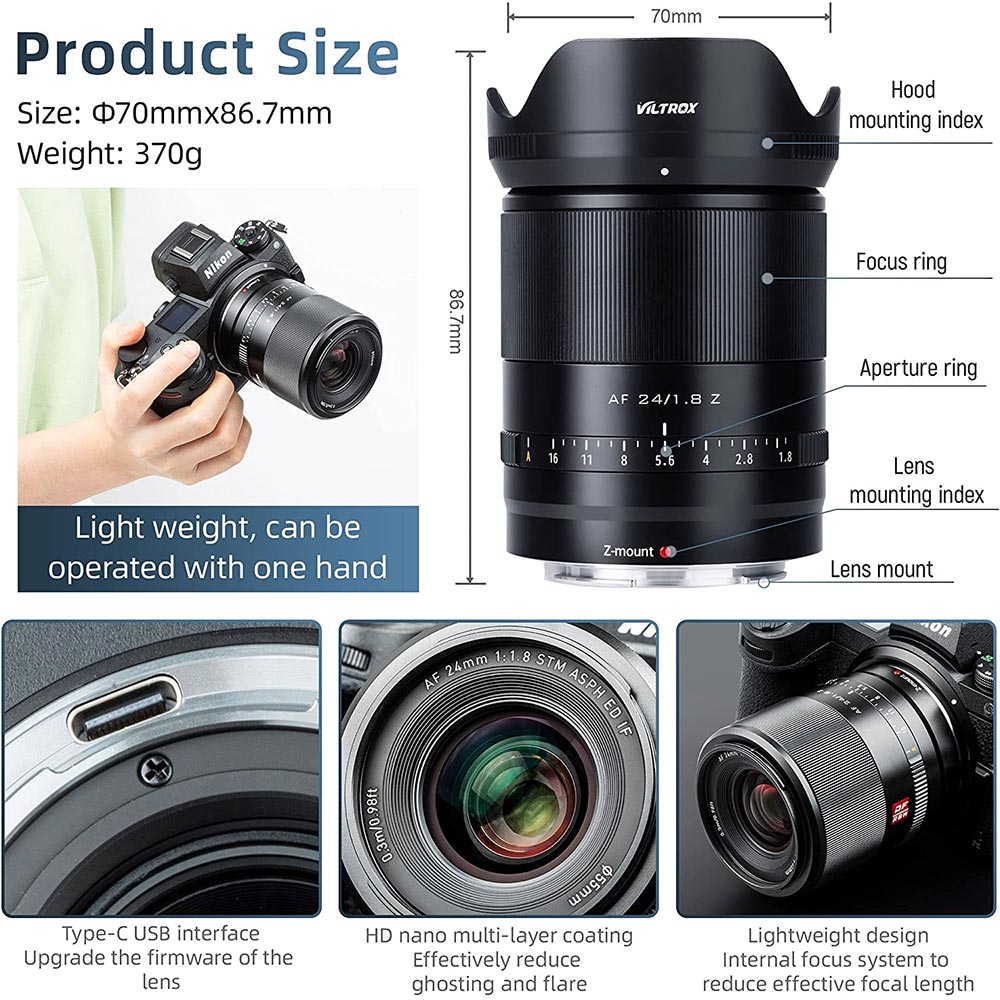 Specifikace: Viltrox AF 24mm f/1.8 Nikon Z