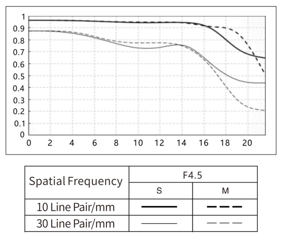 Objektiv má fixní clonu f/4.5 a vykreslí velikost snímače Full Frame.